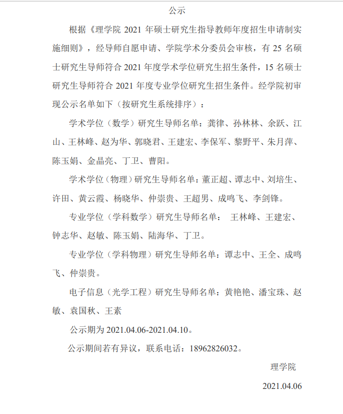 2021年理学院硕士导师学院初审通过名单