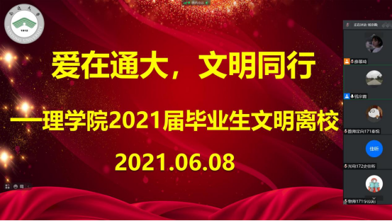 为充分做好学院2021届毕业生离校前的各项工作,营造温馨和谐的毕业生离校氛围,切实保障毕业生安全离校、文明离校、温馨离校。6月8日,理学院召开2021届毕业生文明离校教育会议。
