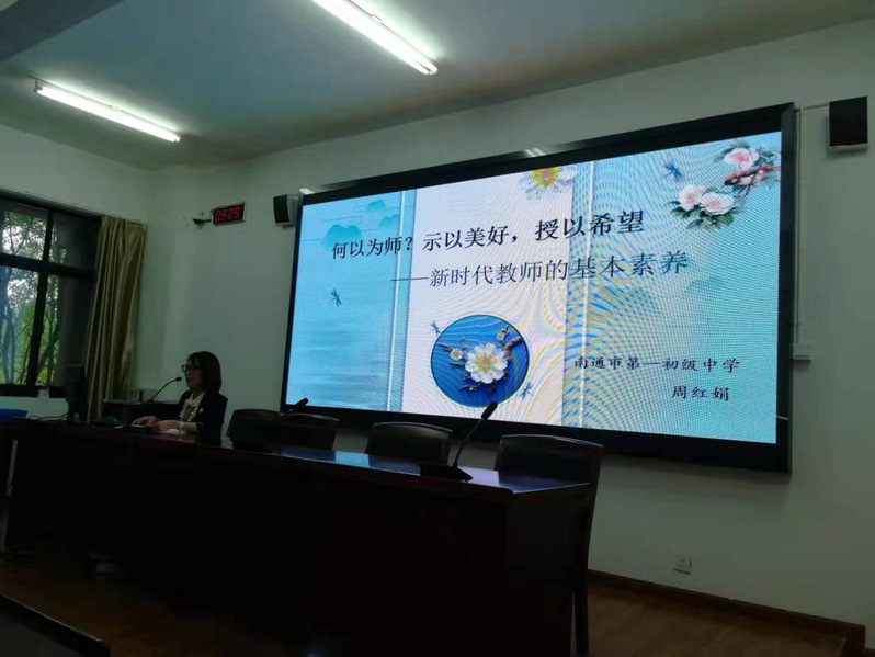 南通第一初级中学教务处副主任、南通市骨干教师周红娟老师为在场的全体师范生作了《何以为师?示以美好,授以希望》专题讲座。从习近平总书记提出的“四有教师”要求入手,号召全体师范生要当有情怀的老师,做有温度的教育。并提出,要想成为一名合格的教师,从现阶段就需要开始蓄力——周老师从多研究、多尝试、多学习三个方面入手,强调师范生应当要深入研究教材、课程标准,精准把握考试范围、重点难点,学会与小组成员合作学习、相互批评指正,听取见习指导老师的建议进行不断的自我提升。周老师的讲话深入人心,赢得了同学们的阵阵掌声,也为这一批师范生将来走向讲台、成长为一名好老师提供了宝贵的经验。