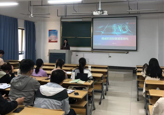理学院技术物理系在11月18日针对2018级光电信息科学与工程专业学生进行了第一次实习动员,光电专业负责人许田介绍了实习的重要性和天美视频 实习要求,并且分别邀请了芯片企业捷捷微电、通富微电介绍各自企业所需岗位,能够提高的学生技能、天美视频、以及企业待遇等。同学们对于两家上市芯片企业有了更深入的了解。(许田)