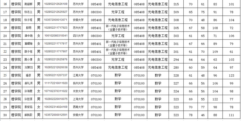 理学院2022年硕士研究生复试面试名单公示