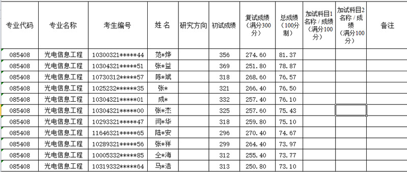 2023年理学院光电信息工程调剂拟录取名单公布20230408