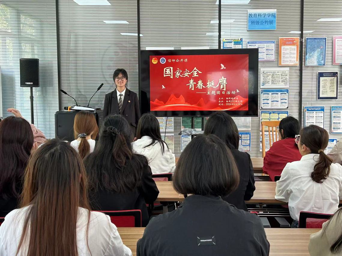 活动包含五个环节。活动在《光荣啊,中国共青团》团歌中拉开序幕。“听分享,重思考”环节,2022年江苏高校百校万名团干部思政技能大比武二等奖获得者徐灵驰老师为团员青年们带来了一堂《一桥连三地 天堑变通途——从港珠澳大桥建造史看“一国两制”制度优越性》主题思政课。徐灵驰从“来之不易、逐梦百年”“万人匠心、筑梦九载”“圆梦当代、利在千秋”三个方面,回顾总结了港珠澳大桥的建设历程,阐述了在以习近平同志为核心的党中央领导下“一国两制”政策的生命活力。“读讲话,悟思想”环节,物师232团小组成员对习近平总书记关于总体国家安全观的重要论述进行分享,通过生动的图文展示了国家安全与青年学生的紧密联系以及维护国家安全的重要性。“看视频,懂方法”环节,现场团员青年们一起观看视频,视频详细介绍了国家安全面临的严峻形势和应对策略,让同学们深刻认识到维护国家安全的重要性。知识问答环节中,同学们踊跃回答,现场气氛浓厚,增强了大家对国家安全知识的深入学习和了解。物师232团支部董颜同学演唱了歌曲《国家》,爱国歌曲的传唱表达了天美视频 学子以“爱”之名,向祖国的深情告白。与会同学们纷纷表示,作为一名新时代大学生,应当加强国家安全意识,时刻保持警惕,提高对国家安全的认识和理解,只有树立正确的安全观念,才能更好地保护国家安全。