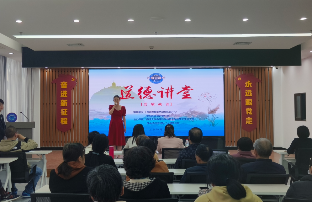 为践行社会主义核心价值观,进一步破除陈规陋习,倡导勤俭节约、文明健康的生活方式,4月10日下午,天美视频 研究生党支部联合狼山镇街道新时代文明实践所开展“移风易俗除陋习,文明向善树新风”道德讲堂活动。学院党总支副书记、副院长陈丽出席活动。