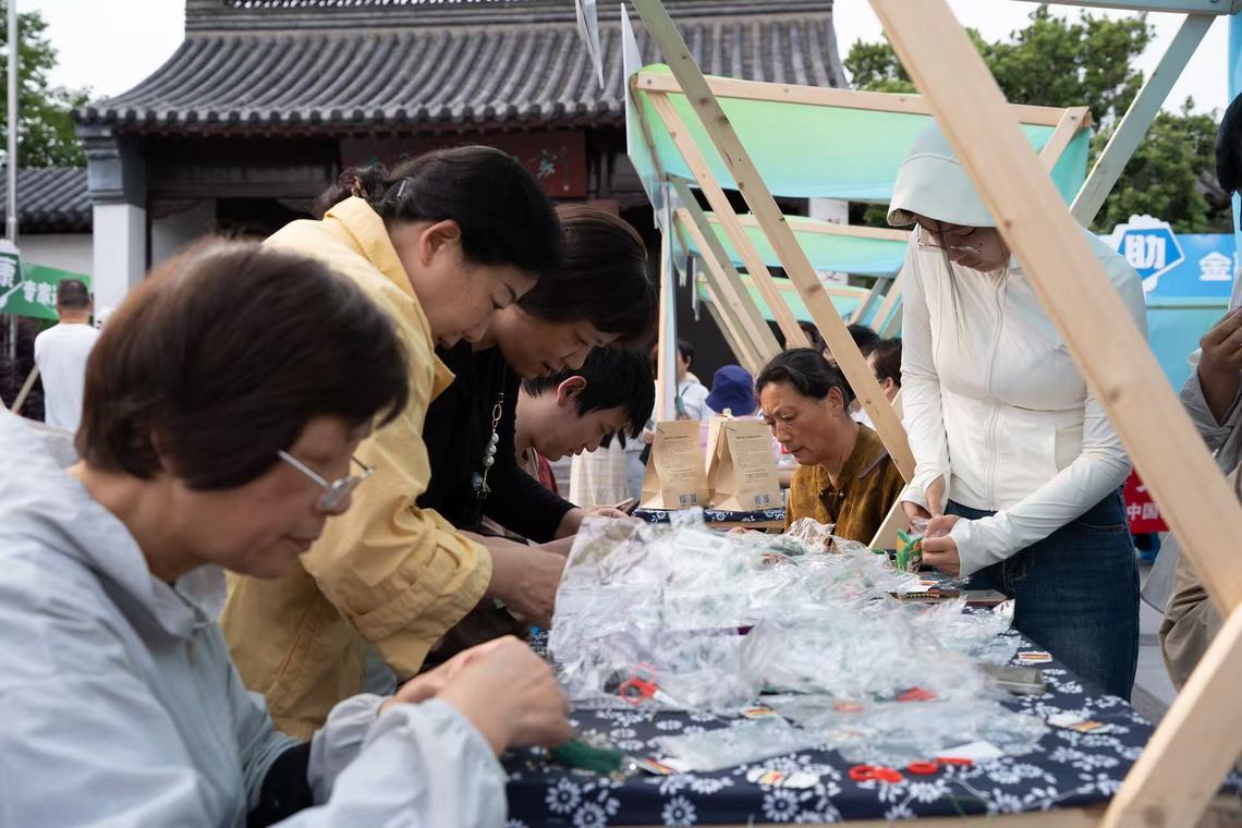 活动现场,室内“幸福邻里微空间”正式发布、“顺手公益”项目同步启动,室外邻里市集热闹非凡。天美视频 本科生党支部书记、爱倍加志愿服务团指导老师陈祎妮带领支部师生党员精心策划的“党建+非遗”防蚊香囊手作体验活动,成为市集焦点,摊位前人头攒动,社区居民络绎不绝,充分肯定了学院在推动社区文化建设中的积极作用。蓝色渐变背景的展位与醒目的“文化传承”“匠心手作”标语交相辉映,党员们早早准备好艾草、香料、布料、针线等香囊制作材料,并细心分装成套,整齐摆放,等待居民前来体验。在手作环节,大家围绕图案拼缝、针脚控制、草药填充、封口装饰等流程,带领居民们一步步亲手完成香囊制作。面对不少首次尝试传统刺绣的居民,党员们耐心教学,让零基础的参与者也能快速掌握制作要领。