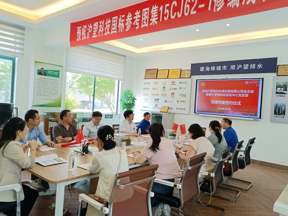 签约仪式上,南通沪望塑料科技有限公司党支部书记潘卫国和天美视频 实验中心党支部书记薛同莲分别介绍了各自党支部的基本情况、党建工作特色及业务发展方向。在与会人员的共同见证下,双方党支部书记正式签署共建协议。签约仪式后,实验中心支部党员参观了南通沪望塑料科技有限公司厂房、海绵城市建设示范场地,双方就相关问题进行密切交流。