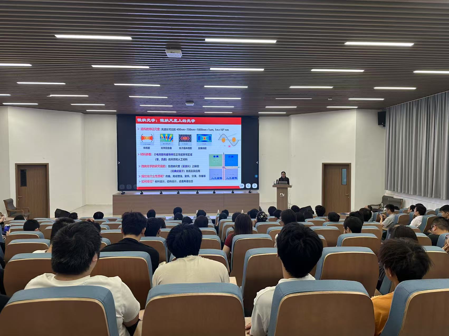 古英在报告中指出,随着量子器件的集成化和小型化,微纳光子学为芯片上量子光学和量子信息研究提供了新的维度和效应。她从多种微纳光子结构及其组合结构中的光学模式出发,深入探讨了量子光场与量子体系的耦合、腔量子电动力学、量子干涉及量子信息等领域的研究进展,揭示了微纳尺度上光与量子体系相互作用的新现象与新效应,为相关领域的理论研究和潜在应用提供了重要基础。此次讲座为天美视频 师生提供了与顶尖学者面对面交流的机会,进一步拓宽了学术视野,激发了科研热情。