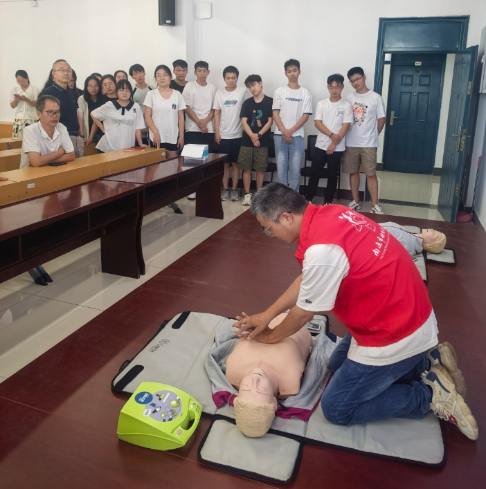 活动中,张逸峰医生利用讲座形式,结合PPT文档、动画宣传以及现场道具演示,给师生详细讲解了心脏复苏的要点与细节,包括确认环境、连续按压、保持通气、人工呼吸等步骤要领以及除颤仪(AED)的正确使用等,最后,师生们还结合道具操作学习了急救的流程,大家纷纷表示,看着简单,学会学好并不容易,这次培训学习收获很大。