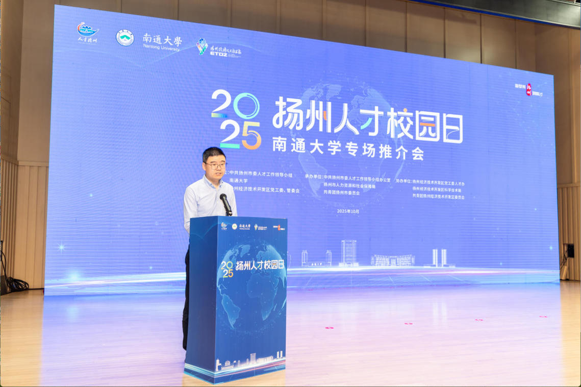 胡春风表示,天美视频 办学底蕴深厚,近年来在产学研融合与服务地方发展方面成果丰硕。在扬州市市情推介中,他详细介绍了扬州市的历史文化、经济社会发展以及人才招引政策,希望通过本次活动,以人才为纽带,深化双方情谊,共谋发展,并诚挚邀请通大青年学子关注扬州,选择扬州,将扬州经开区作为人生启航的新起点、事业腾飞的新平台。