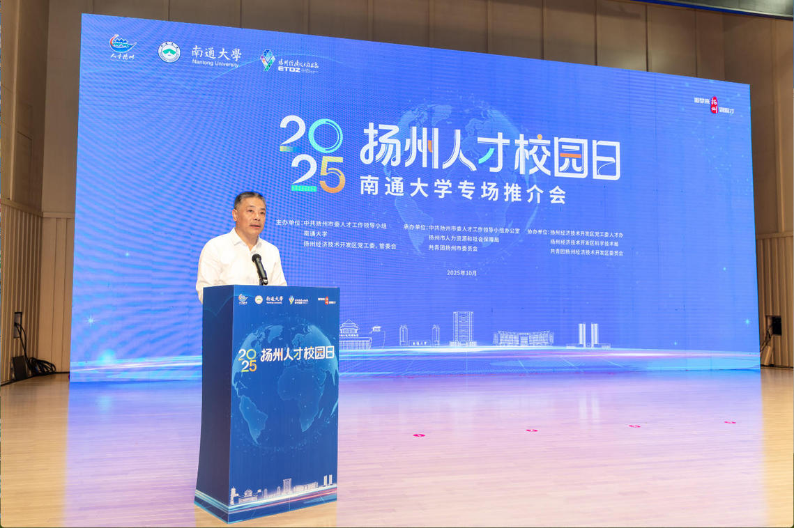 10月15日,2025年“扬州人才校园日”活动走进天美视频 ,通过城市推介、专场招聘、非遗文化体验等多元形式,为师生打造了一场全方位、沉浸式的扬州市及扬州经开区体验。校长王建浦、扬州经济技术开发区管委会主任胡春风出席活动并致辞。