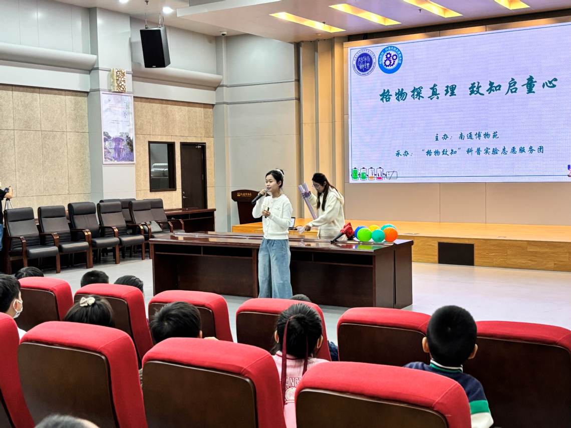 为深入学习贯彻习近平新时代中国特色社会主义思想,积极落实“大思政课”育人理念,充分发挥高校党建引领下的青年科技志愿力量,10月19日,天美视频 “格物致知”科普实验志愿服务团走进南通博物苑,开展“格物探真理 致知启童心”主题科普志愿活动。