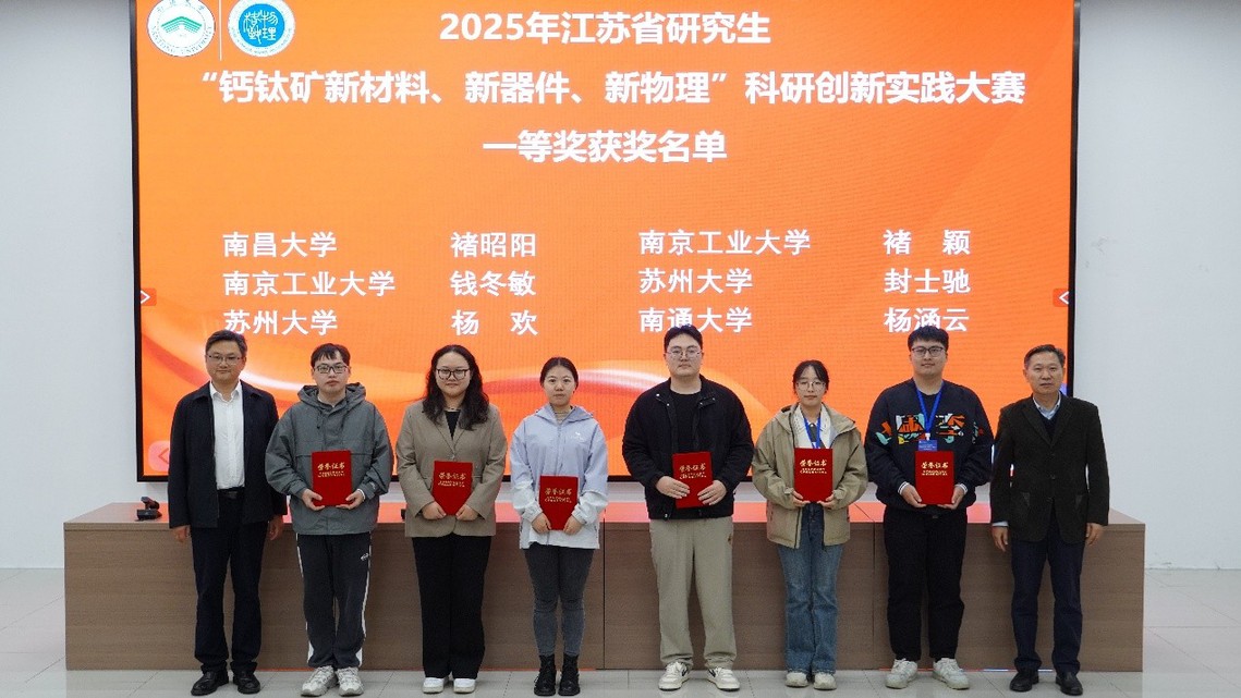 近日,2025年江苏省研究生"钙钛矿新材料、新器件、新物理"科研创新实践大赛总决赛在我校举行。天美视频 组织的参赛团队,历经资格赛与现场答辩激烈比拼,最终荣获一等奖1项,二等奖2项和三等奖2项的佳绩。