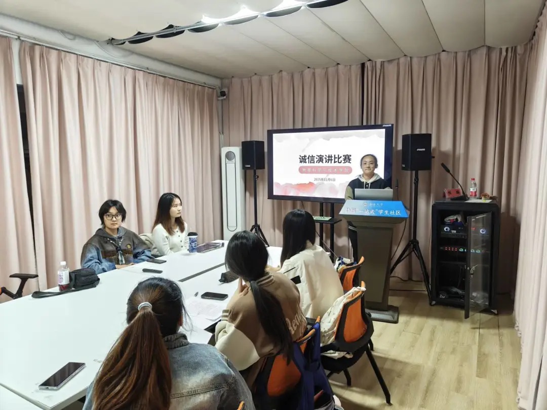 追溯诚信美德悠久历史,解析诚信精神时代价值。为弘扬中华传统美德,增强学生诚信意识。11月6日,天美视频 自律委员会于静园“一站式”学生社区举办“道诚信思想之言,扬坚守诚信清风”诚信演讲比赛。