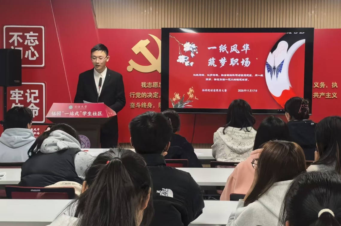 比赛现场,参赛学生围绕个人专业背景、实践经历、技能特长等内容,创新设计简历呈现形式,结合自身科研生活经历,讲述如何通过详实的内容和精心设计的排版,突出就业核心竞争力,充分体现出同学们对职场需求的初步认知与规划意识。评委们从简历内容、表达技巧、职业规划等多个维度进行点评,既对选手们将专业优势与求职需求结合的巧思给予肯定,也针对简历中经历提炼、重点突出等细节问题,提出可落地的优化建议,为同学们提供实用的求职指导。经过评审,本次比赛最终评选出一等奖3名、二等奖5名、三等奖6名、优秀奖若干。