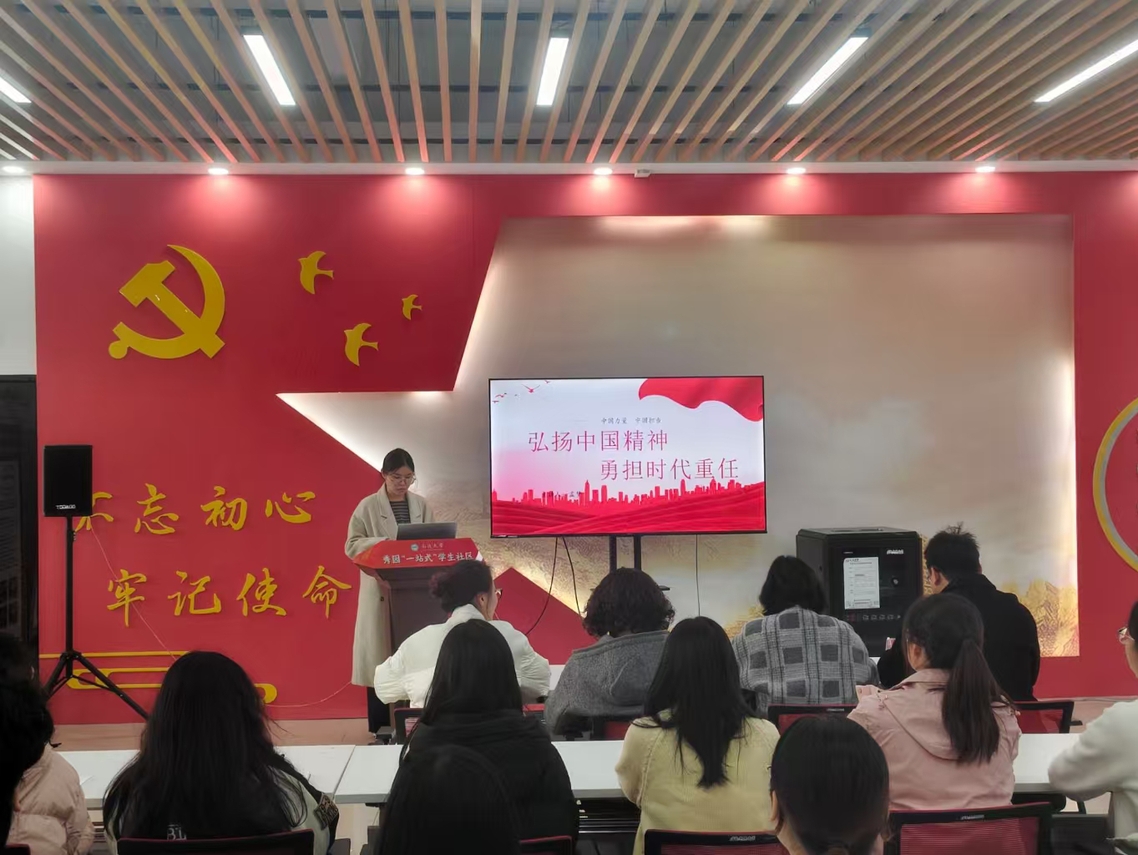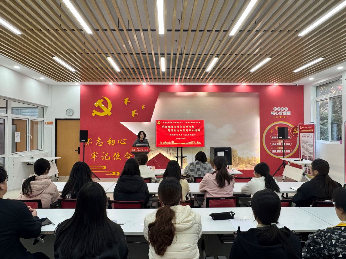 为深入学习贯彻党的二十届四中全会精神,强化学生党员与入党积极分子党性修养,推动党的创新理论落地生根,11月20日,天美视频 在秀园“一站式”学生社区党建之家举办“学思践悟与时代召唤同频 笃行致远为强国伟业增辉”学生党员“进社区讲党课”活动。学院党总支书记徐凌出席活动并讲话。