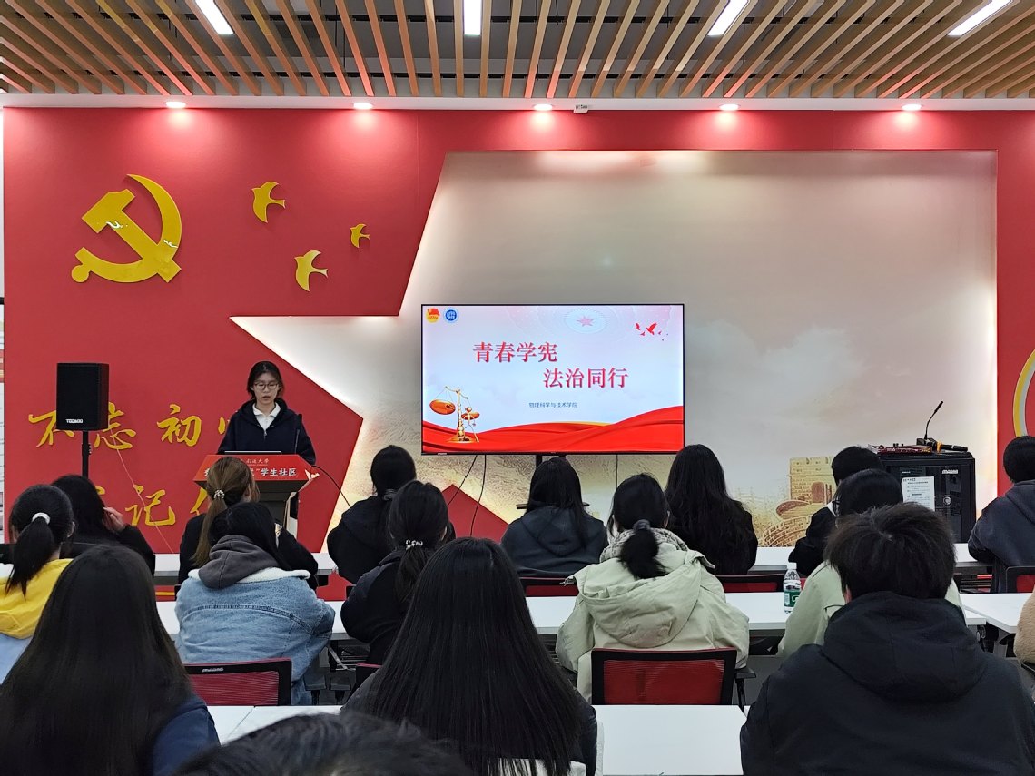 活动以宪法知识宣讲揭开序幕。物师242班张敏津紧扣“宪法是国家的根本法”这一核心定位,从法律地位、效力层级、内容特征三个维度深入剖析,使同学们清晰地把握宪法的核心属性。光电241班武嘉蔚围绕宪法性质展开阐述,结合国家性质、根本任务、人民代表大会制度等关键要素,深入解读宪法如何回应国家生活中的根本性问题。物师241班周涵嫣回顾了从1954年首部宪法诞生到2022年最新修订的历史脉络,展现了宪法与国家发展同步前行的历程,同时强调了“国家宪法日”的设立意义,引导同学们重视宪法学习,增强宪法意识。通过生动形象的宣讲,同学们深刻认识到宪法不仅是治国安邦的总章程,更是与每个人息息相关的“权利保障书”。