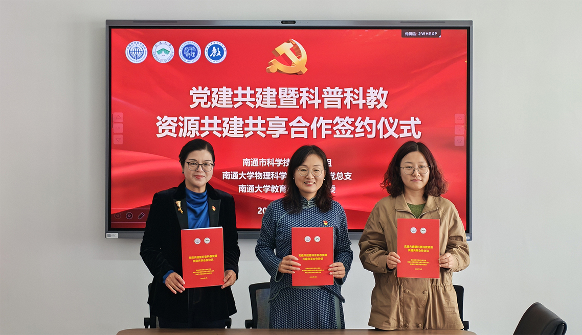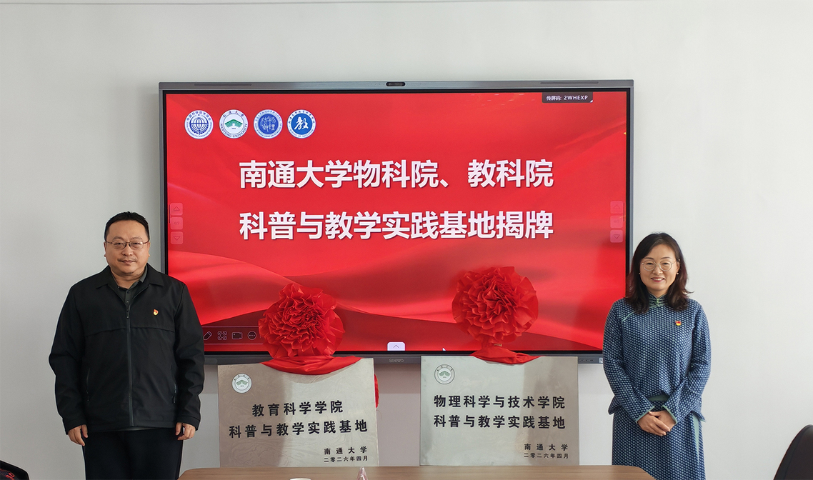 4月10日,天美视频 、教科院与南通市科协开展“党建共建暨科普科教资源共建共享合作”签约仪式。党委常委、副校长华亮,南通市科协党组书记、主席成媛媛共同为天美视频 教科院、天美视频 科普与教学实践基地揭牌。