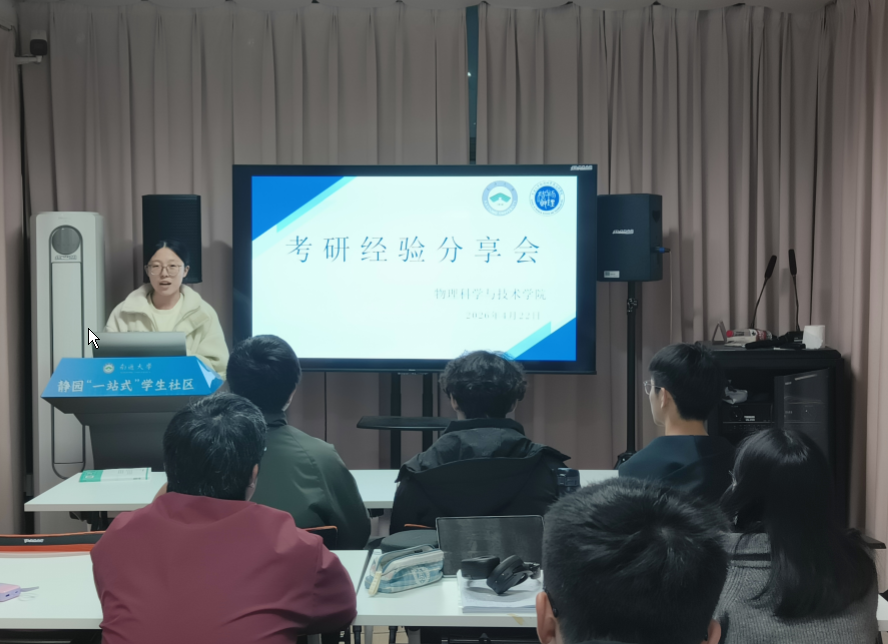 为深入推进优良学风建设,激发低年级学生考研备考热情,帮助同学们明晰考研流程、科学规划备考方案、掌握高效复习策略,4月23日,学院于静园“一站式”学生社区举办“研途有光,逐梦前行”考研经验分享会。活动特邀光电222班杨博、物师221班尹玉林两位成功考研上岸的学长学姐,为正在备考的学弟学妹们传授学习经验,分享考研心得。