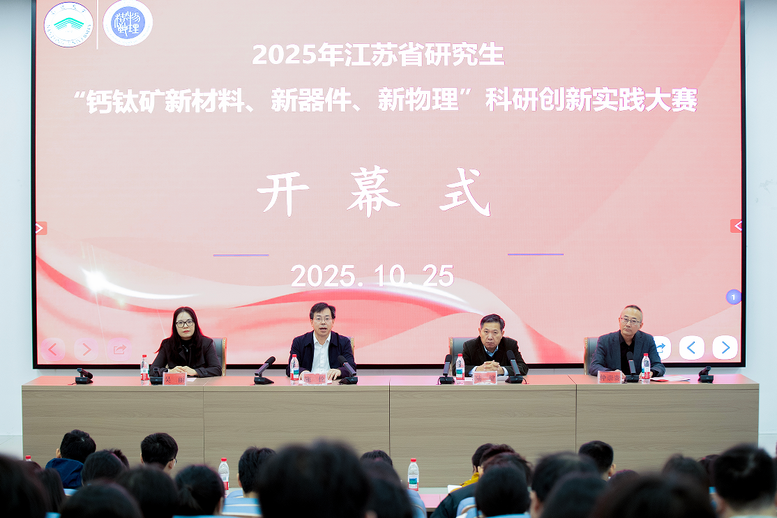 陆健代表省教指委对大赛的开幕表示热烈祝贺。他说,我们正处在一个科技创新日新月异、深刻改变世界格局的时代。新材料作为高新技术发展的先导和基石,是引领产业变革、推动社会进步的关键力量,钙钛矿材料以其优异的光电特性、丰富的可调性正展现出巨大的应用潜力,成为了全球材料科学、物理学、化学及交叉学科领域竞相研究的热点。他希望同学们能通过这个平台,展示风采、相互学习、取长补短;深入交流,激发灵感,建立友谊,共同进步;勇于挑战传统认知,提出新概念、新理论、新方法,在“新材料”与“新物理”的交叉地带做出具有原创性的工作,将创新构想转化为切实可行的技术方案或原型器件,在“新器件”的研发上取得突破。